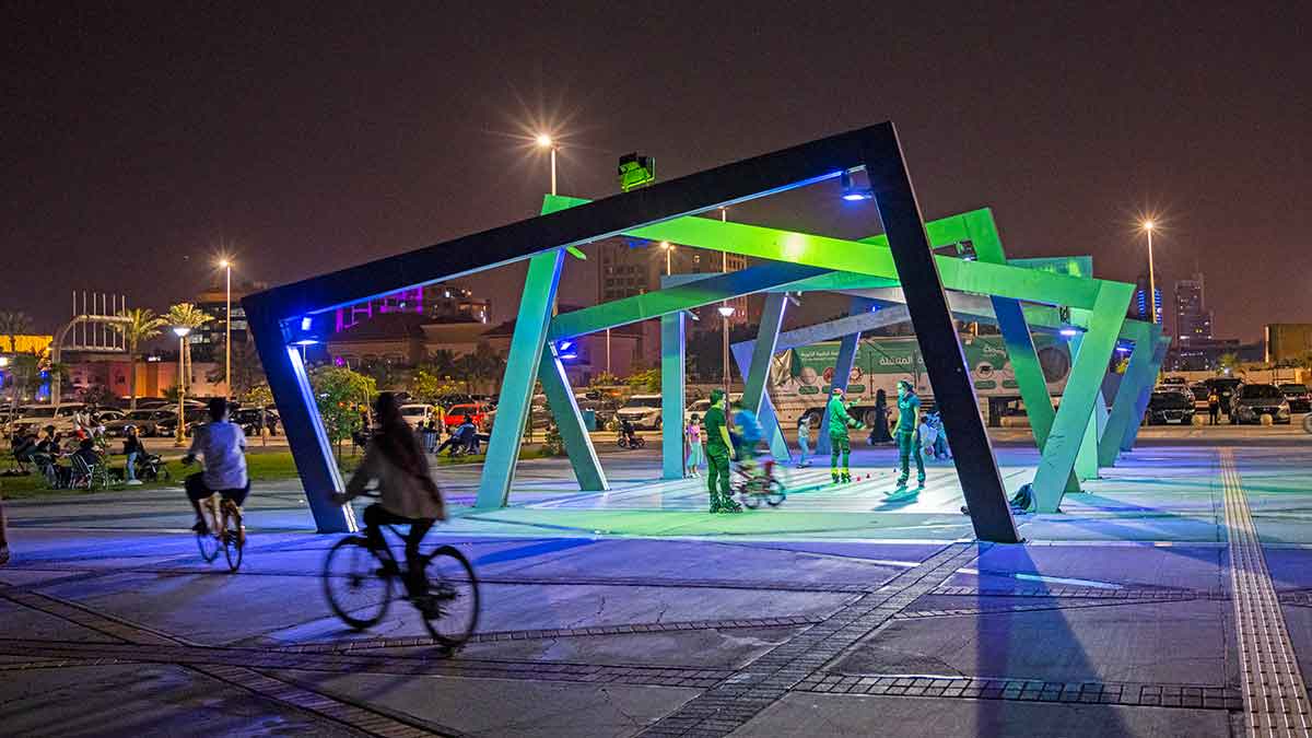 حيثما أجلت بصرك، ترى عديدًا من الناس، صغارًا وكبارًا، ومن مختلف الجنسيات يتجولون بدراجاتهم الهوائية، بينما يمارس هواة التزلج على الألواح هوايتهم تحت أضواء مجسم جمالي قبالة برج الخبر، وهناك عدد من الأسر ممن افترشوا الأرض لتناول سحورهم، وآخرون مجتمعون حول طاولات المطاعم التي تستقبل الزبائن حتى تلك الساعة المتأخرة، حيث لا صوت يعلو فوق صوت السهر!