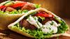 Heat the pita bread in the oven or the microwave and divide each into two halves.