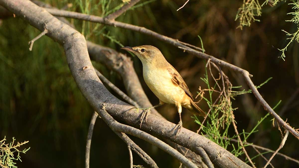 Caption for top photo: Basra reed warbler (Acrocephalus griseldis)is an unobtrusive and globally threatened species. It breeds in wetlands in Iraq and Kuwait, with tall reeds and nearby tamarisks. On migration it occurs in fodder fields in the Eastern Province. It is regularly recorded in reedbeds and dense vegetation on Dhahran camp (Photo: Duha Alhashimi)